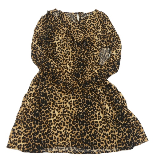 Hnědo-černé lehké šaty s leopardím vzorem a volánem Primark