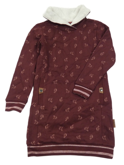 Nové - mahagonové teplákové teplé šaty s koníky a pruhy a stojáčkem YIGGA