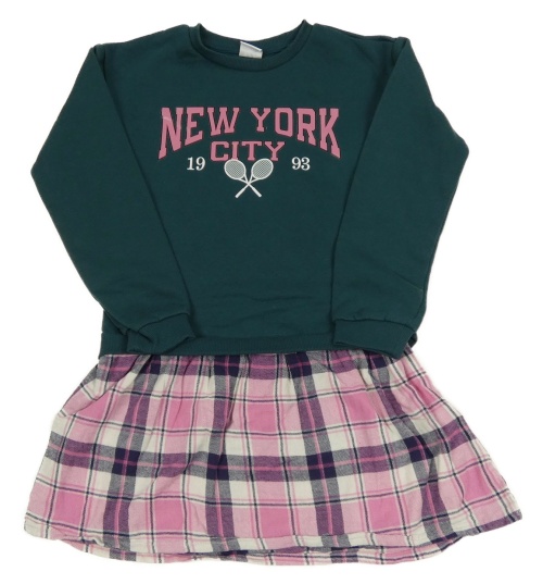 Tmavozeleno-kostkované teplákovo/plátěné šaty s nápisem Y.F.K.
