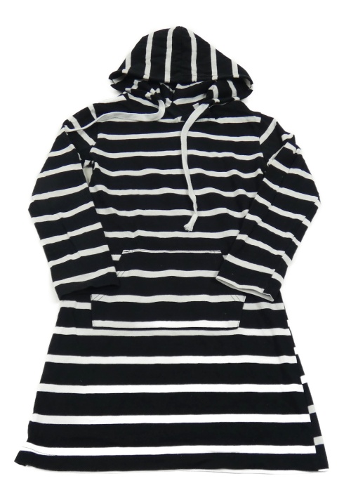 Černo-bílé pruhované bavlněné šaty s kapucí