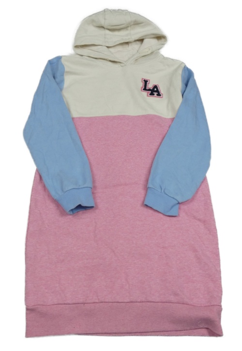 Smetanovo-růžovo-modrá šatová mikina s písmeny a kapucí Yigga