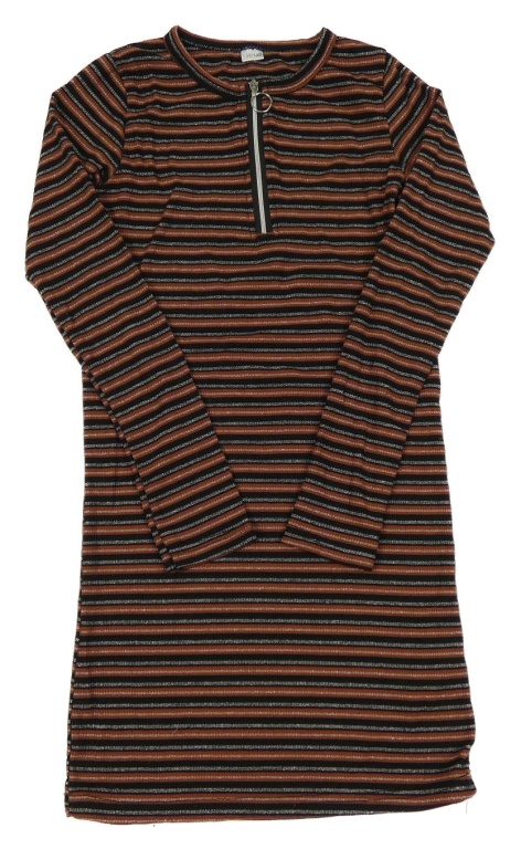 Hnědo-černo-stříbné pruhované šaty