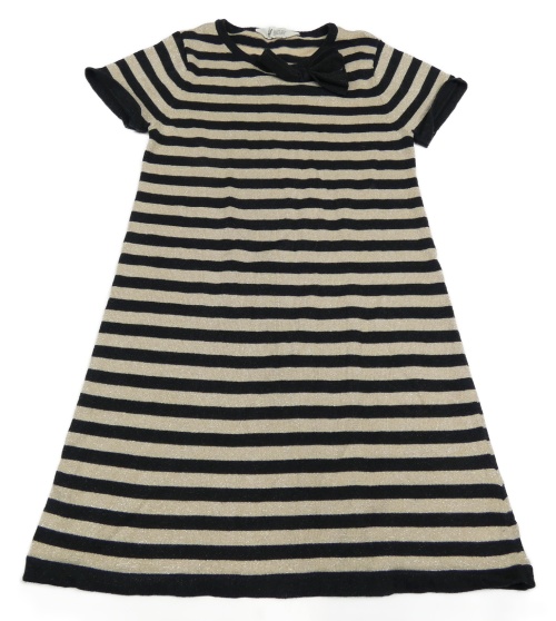 Černo-béžové pruhované třpytivé svetrové šaty s mašlí H&M
