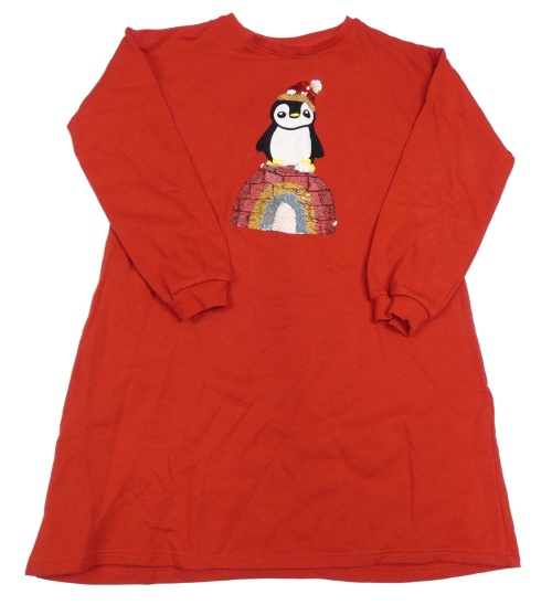 Červené teplákové šaty s tučňákem a flitry H&M