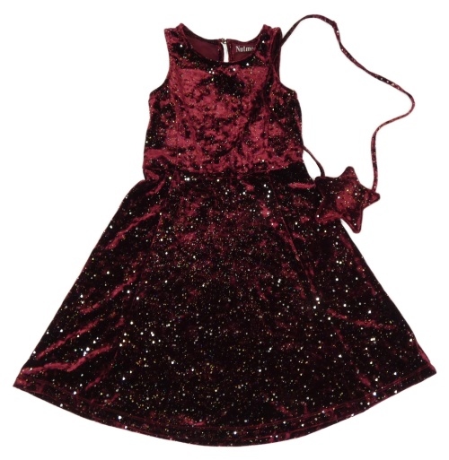 2set - Vínové třpytivé sametové šaty + kabelka Nutmeg