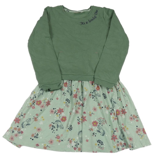 Khaki-světleolivové teplákovo/bavlněné šaty s nápisem a kapsou a koníky Kids