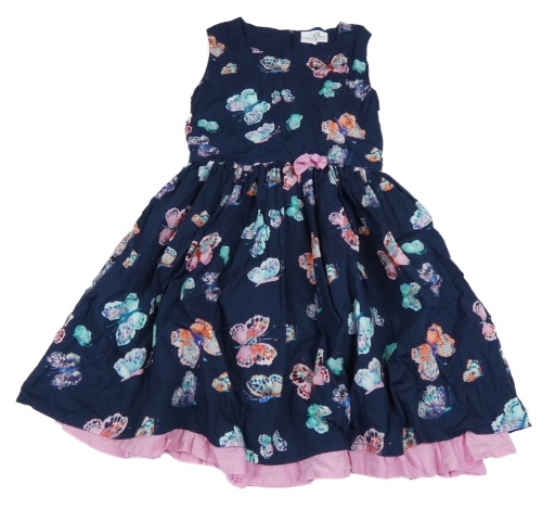 Tmavomodré plátěné šaty s motýly