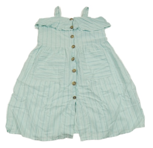 Světlemodro-bílé pruhované propínací šaty s volánkem