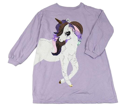 Lila teplákové šaty s jednorožcem z překlápěcích flitrů H&M