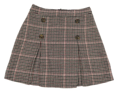 Vínovo-černo-růžová vzorovaná vlněná sukně s knoflíky George
