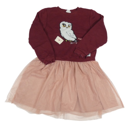 Vínovo-starorůžové teplákovo/tylové šaty s Hedvikou - Harry Potter H&M