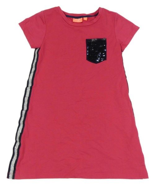 Fuchsiové šaty s pruhy a flitrovou kapsou