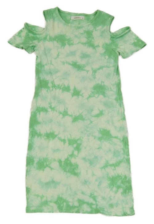 Světlezelené batikované žebrované šaty s průstřihy na ramenou Reserved