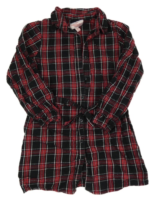 Červeno-černé propínací kostkované flanelové šaty Threadgirls