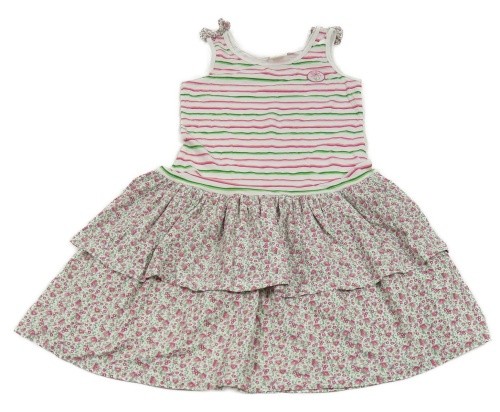 Bílo-růžovo-zelené pruhované šaty s kytičkami a volánkem a mašlemi Kids