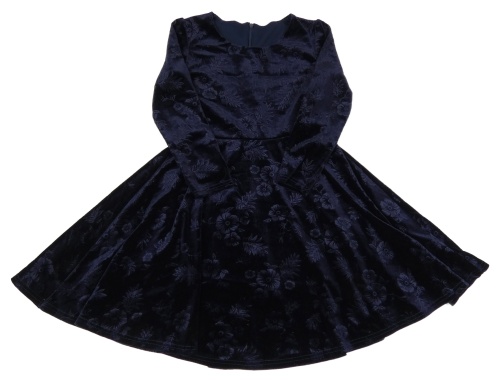 Tmavomodré sametové šaty s květy