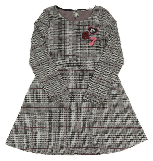 Černo-šedo-vínové kostkované úpletové šaty s nášivkami Pepperts