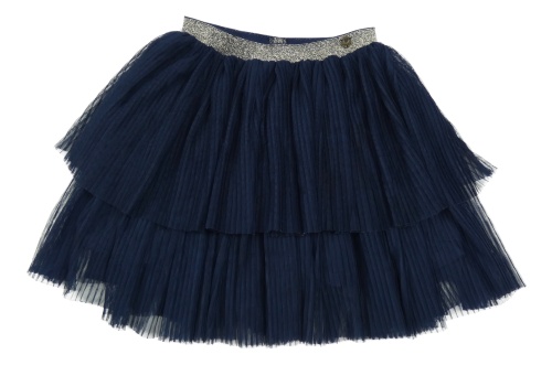 Tmavomodrá plisovaná tylová vrstvená sukně s volánky