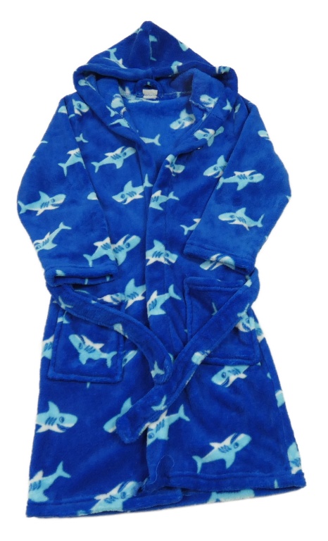 Tmavomodrý plyšový župan se žraloky a kapucí