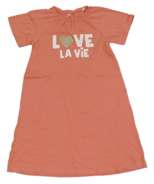 Lososové šaty s nápisy a srdíčkem Vertbaudet