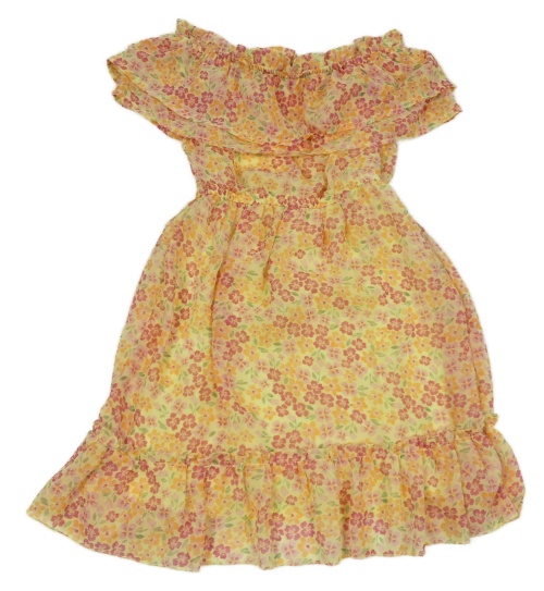 Světležluté květované šifonové šaty s volánky