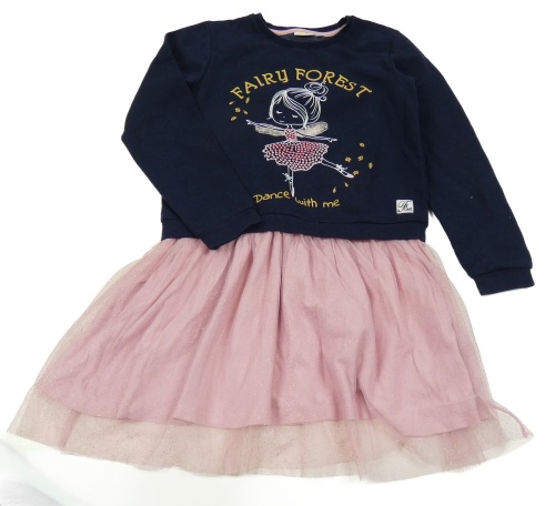 Tmavomodro-růžové teplákovo/tylové šaty s baletkou a nápisem