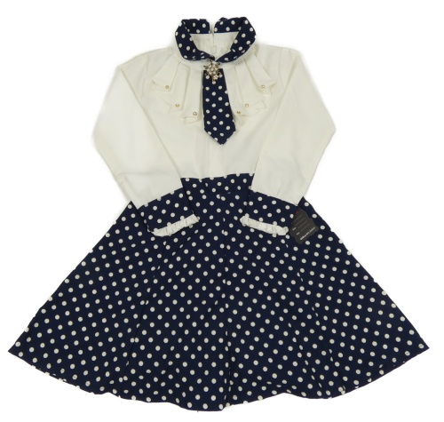 Nové - Bílo-tmavomodré šaty s puntíky a broží