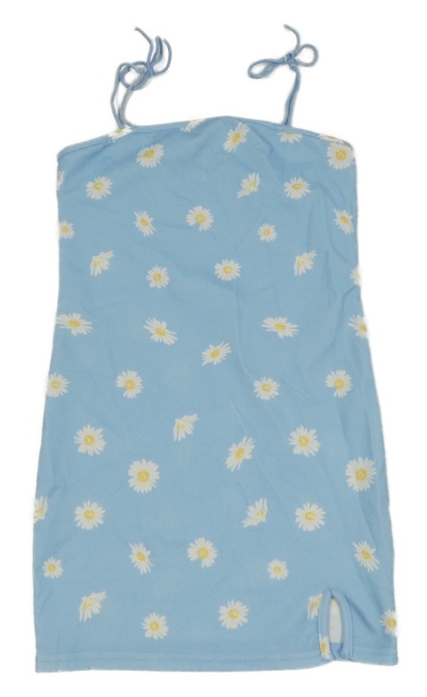 Modré pouzdrové šaty s kytičkami a rozparkem Shein