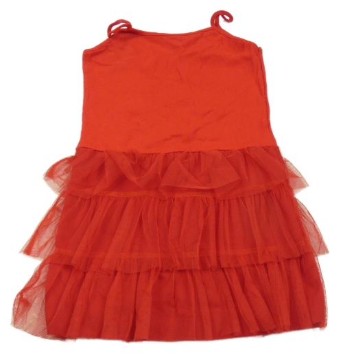 Červené žebrované šaty s tylovými volánky