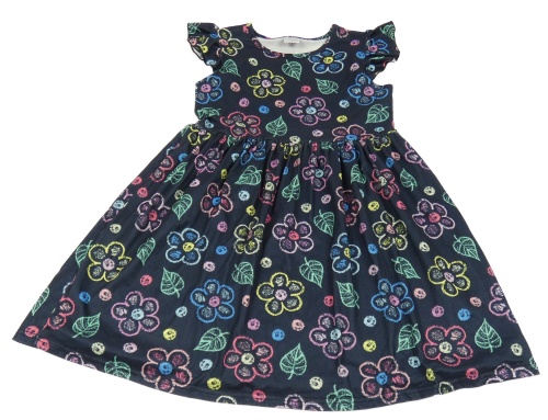 Tmavomodro-barevně puntíkaté šaty s květy a lístečky a volánky
