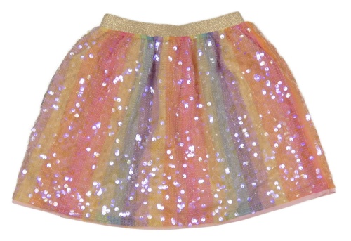 Barevná pruhovaná tylová flitrová podšitá sukně se zlatým pasem