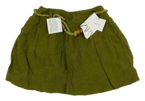 Nové - Khaki lněná sukně s tkaničkou Zara