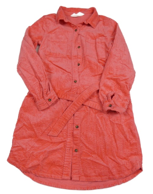 Korálové manšestrové propínací košilové šaty s páskem H&M