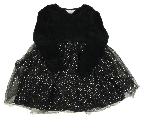Černo-stříbrné žinylkové šaty s tylovou puntíkatou sukní H&M