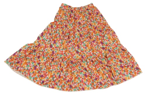 Červeno-růžovo-zelená kytičkovaná midi sukně