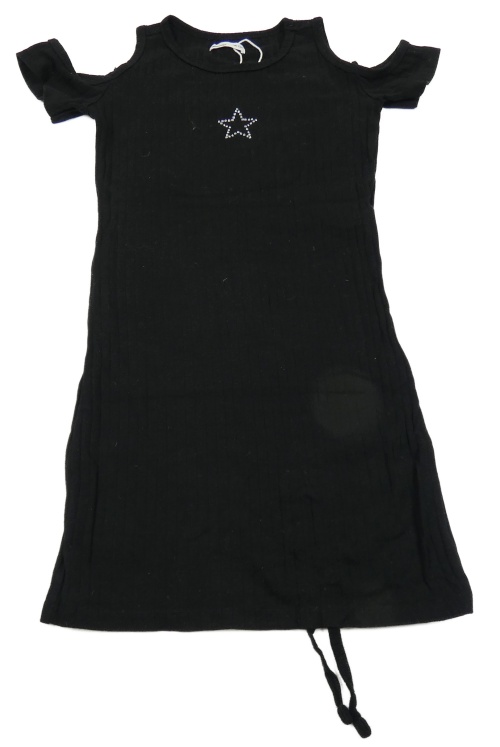 Černé žebrované elastické šaty s hvězdou z kamínků a průstřihy Sinsay