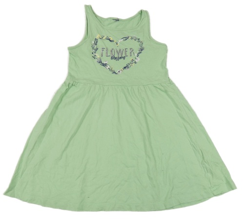 Zelené bavlněné šaty se srdcem z květin a nápisem