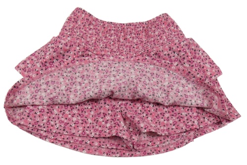 Růžová kytičkovaná mačkaná sukně se všitými kraťasy Page one young
