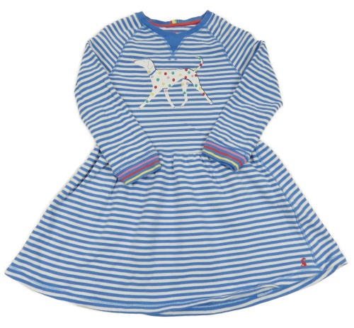 Modro-bílé pruhované teplákové šaty s pejskem joules