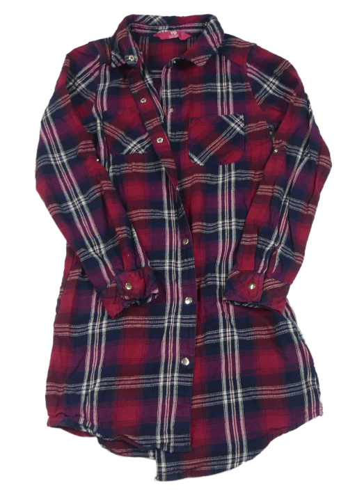 Červeno-tmavomodro-bílé kostkované propínací košilové šaty YD