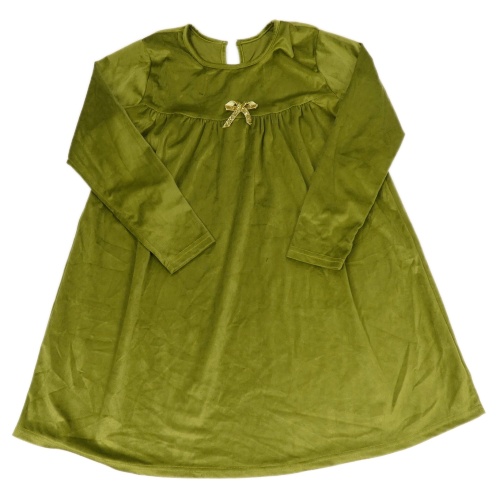 Brčálově zelené plyšové šaty se zlatou mašlí SHEIN