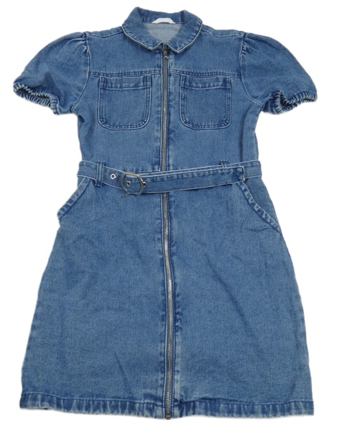 Modré riflové propínací šaty s límečkem a páskem Candy Couture
