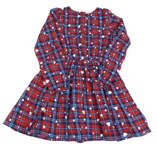 Červeno-tmavomodro-modré kostkované šaty s bílými srdíčky Zab Kids