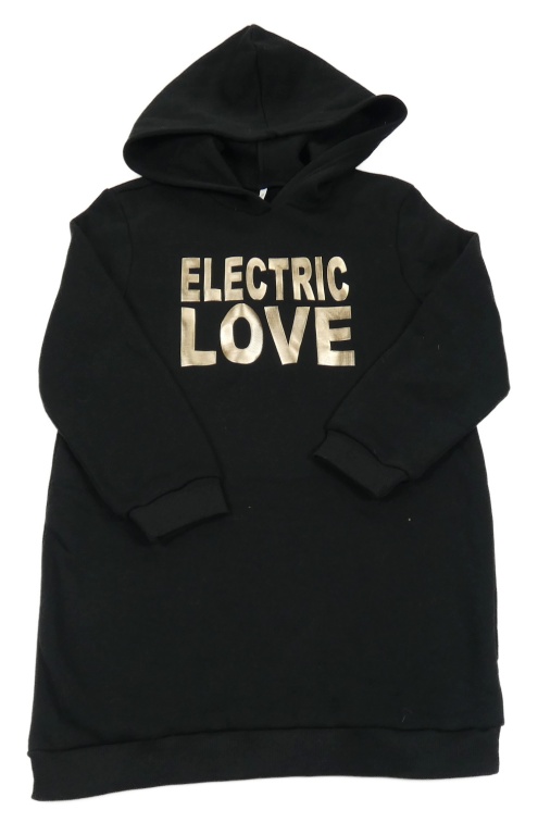 Černé teplákové teplé šaty se zlatými nápisy a kapucí SHEIN