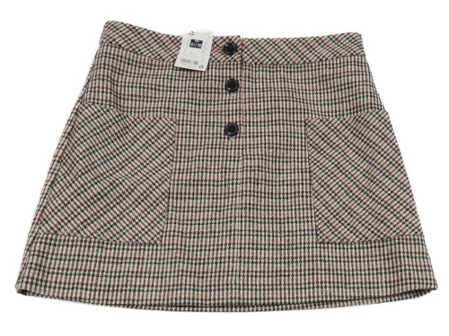 • Nové - smetanovo-černo-vínovo-starorůžová kostkovaná/vzorovaná vlněná sukně se třpytkami St. Bernard