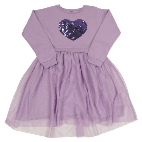 Lila teplákovo/tylové šaty se srdíčkem z flitrů TU