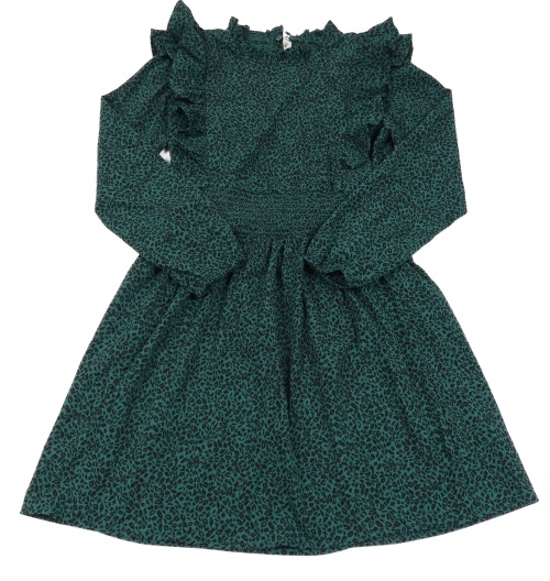 Tmavozeleno-černé vzorované lehké šaty s volánky only