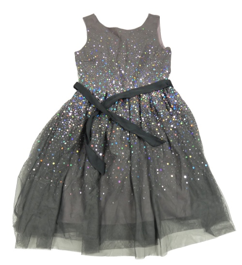 Šedo-lila tylové šaty s flitry a páskem
