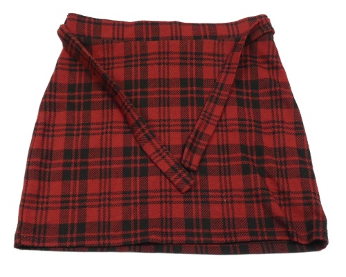 Červeno-černá kostkovaná úpletová sukně s páskem F&F