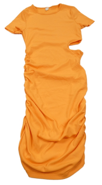 Neonově oranžové žebrované šaty Shein